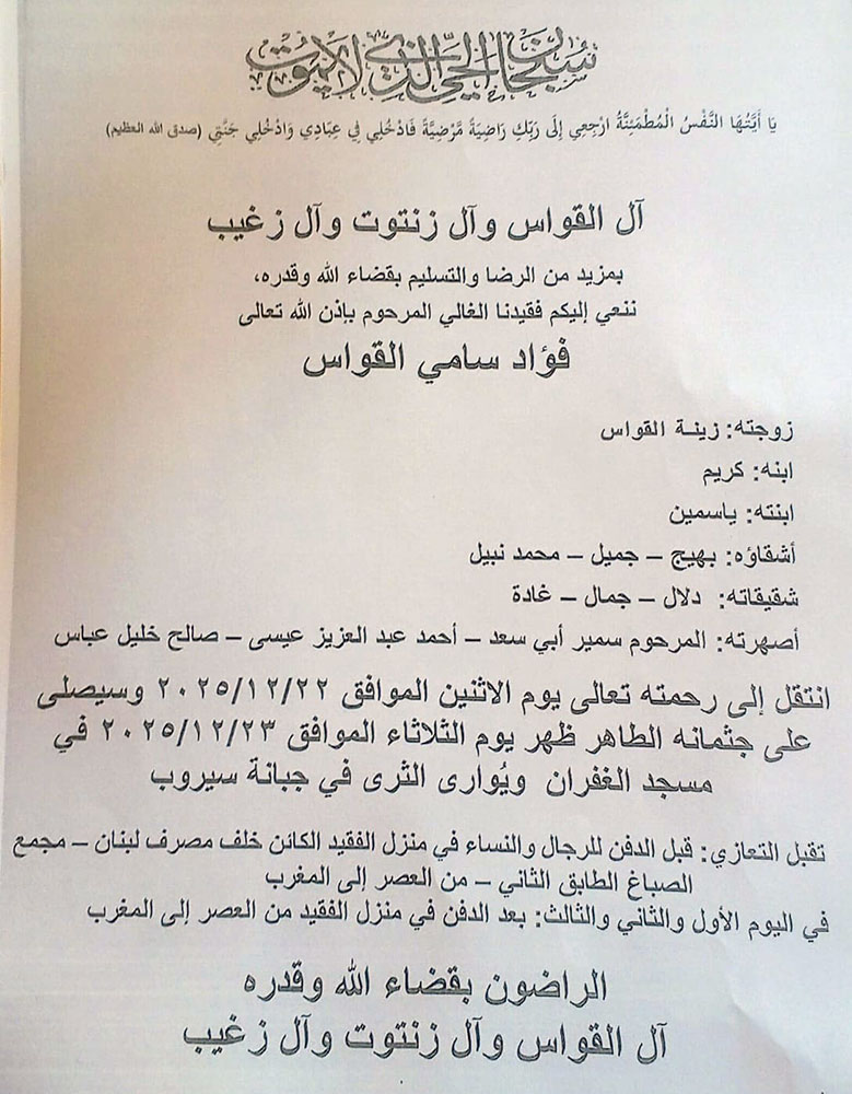 - الإثنين 22 كانون أول 2025 - [ عدد المشاهدة: 235 ]