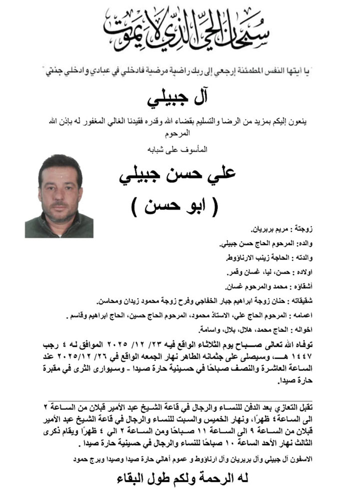 علي حسن جبيلي (أبو حسن) في ذمة الله