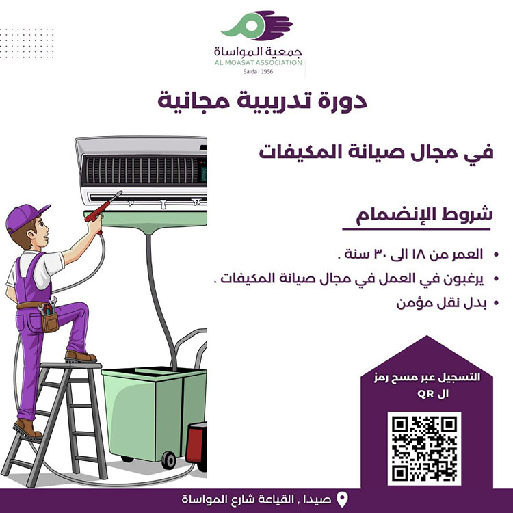 دورة تدريبية مجانية في مجال صيانة المكيفات في جمعية المواساة
