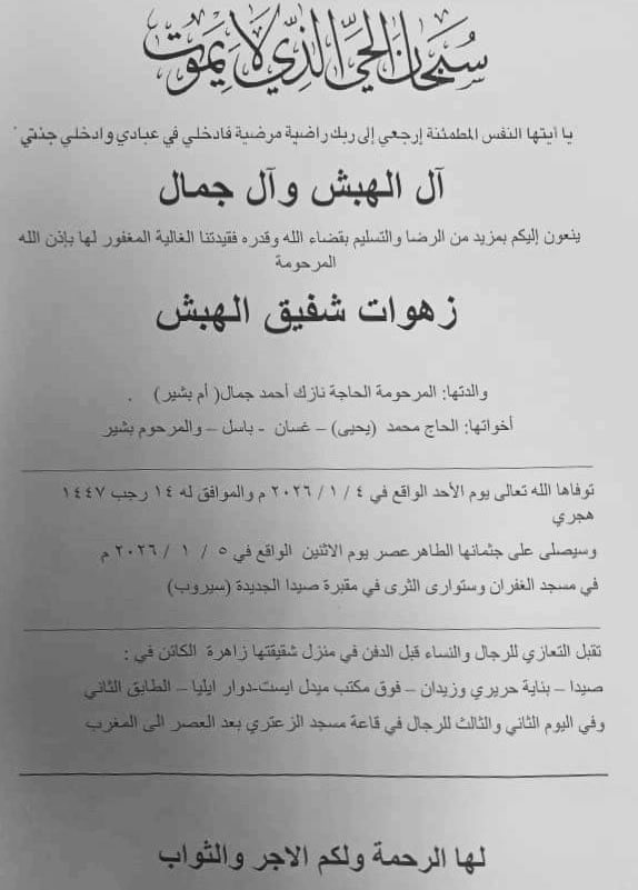 - الإثنين 05 كانون ثاني 2026 - [ عدد المشاهدة: 2194 ]