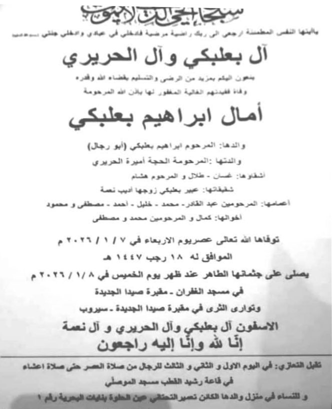 الحاجة إنصاف الحريري (أرملة مصطفى السبع أعين) في ذمة الله
