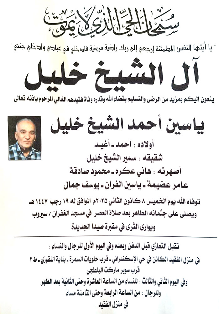 ياسين أحمد الشيخ خليل في ذمة الله
