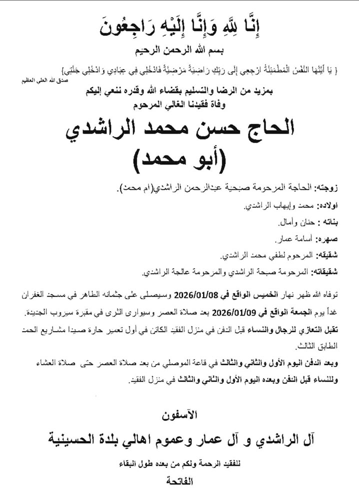 الحاج حسن محمد الراشدي (أبو محمد) في ذمة الله