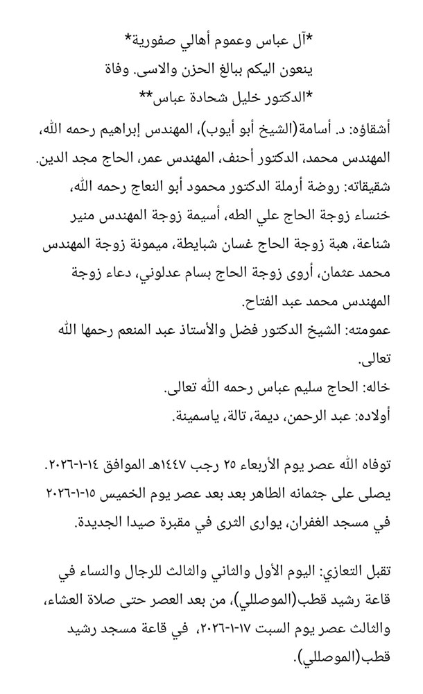 - الخميس 15 كانون ثاني 2026 - [ عدد المشاهدة: 175 ]