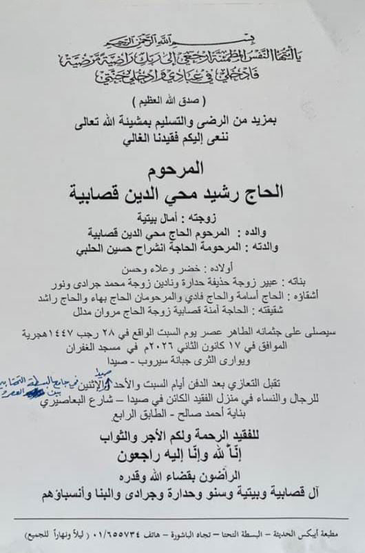 الحاج رشيد محي الدين قصابية في ذمة الله