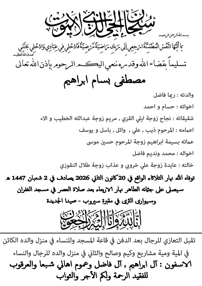 الشاب عبد الله جهاد عدلوني في ذمة الله