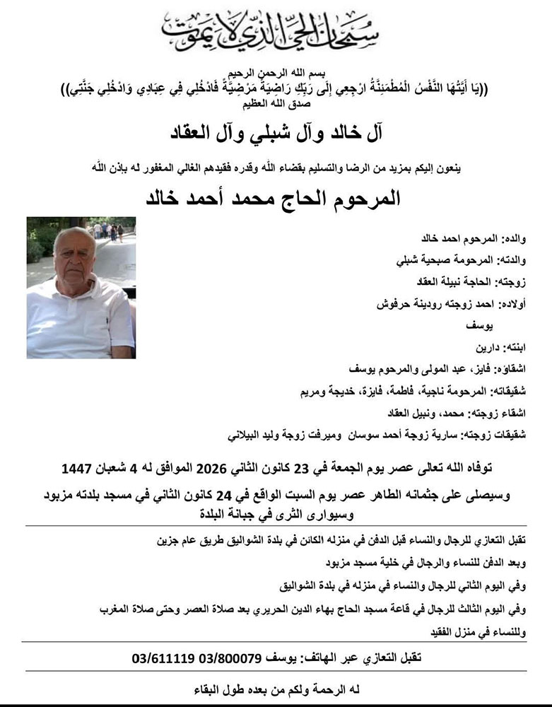 الحاج محمد أحمد خالد في ذمة الله