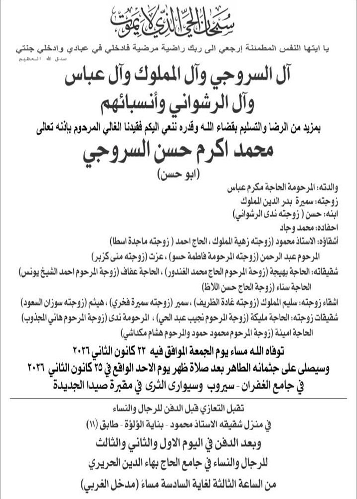 محمد أكرم حسن السروجي (أبو حسن) في ذمة الله