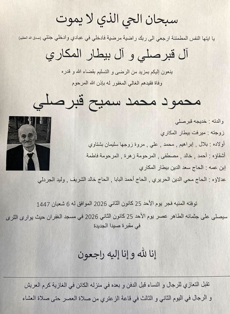 وفيات صيدا والجوار
