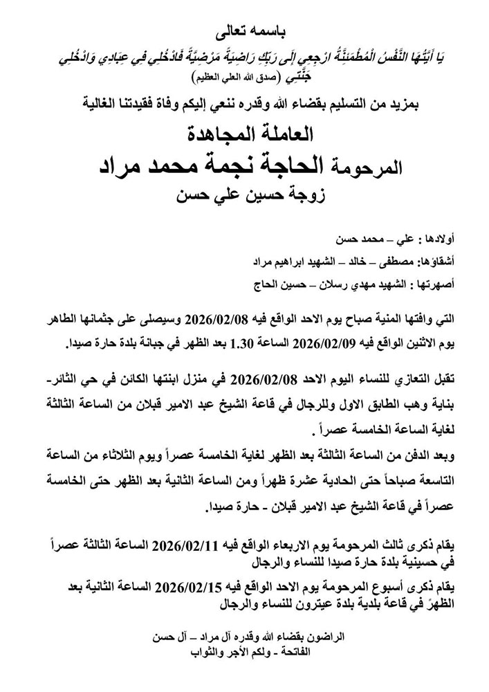 وفيات صيدا والجوار