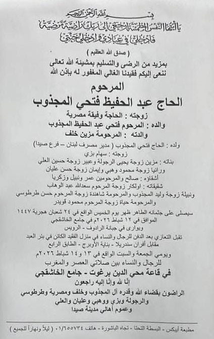 وفيات صيدا والجوار