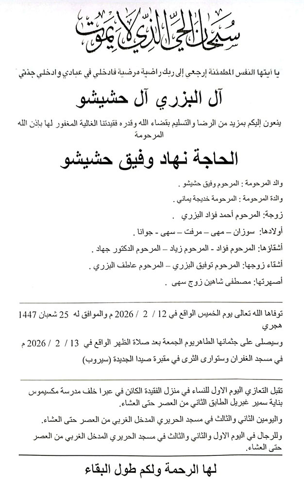 - الجمعة 13 شباط 2026 - [ عدد المشاهدة: 212 ]