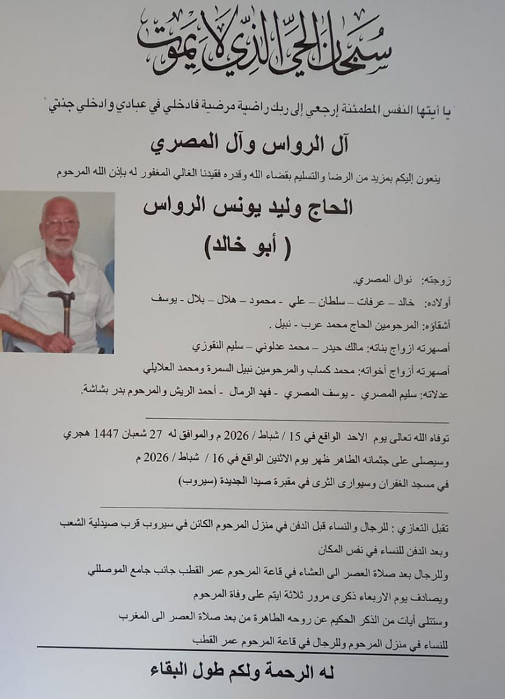 الحاج وليد يونس الرواس (أبو خالد) في ذمة الله