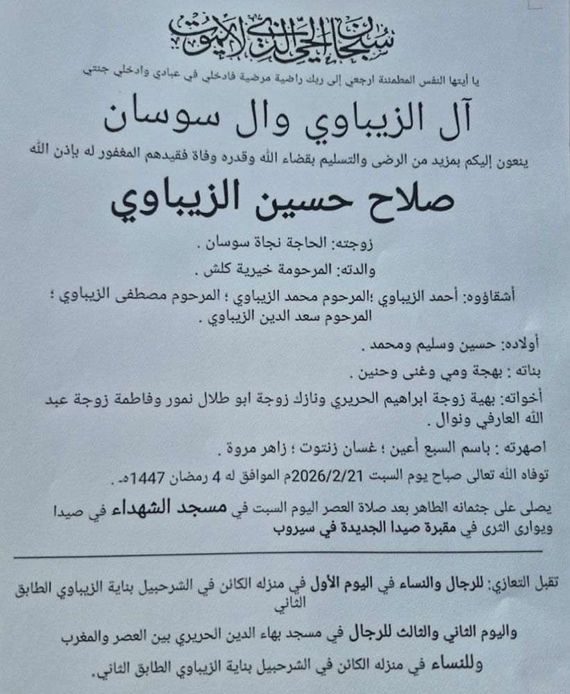 وفيات صيدا والجوار