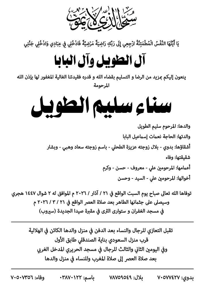 سناء سليم الطويل في ذمة الله