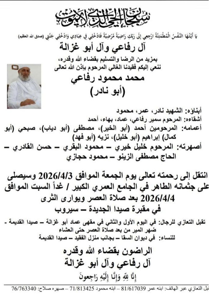 محمد محمود رفاعي (أبو نادر) في ذمة الله