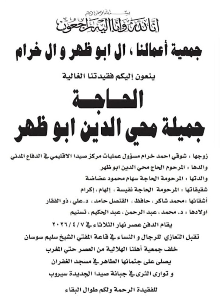 وفيات صيدا والجوار