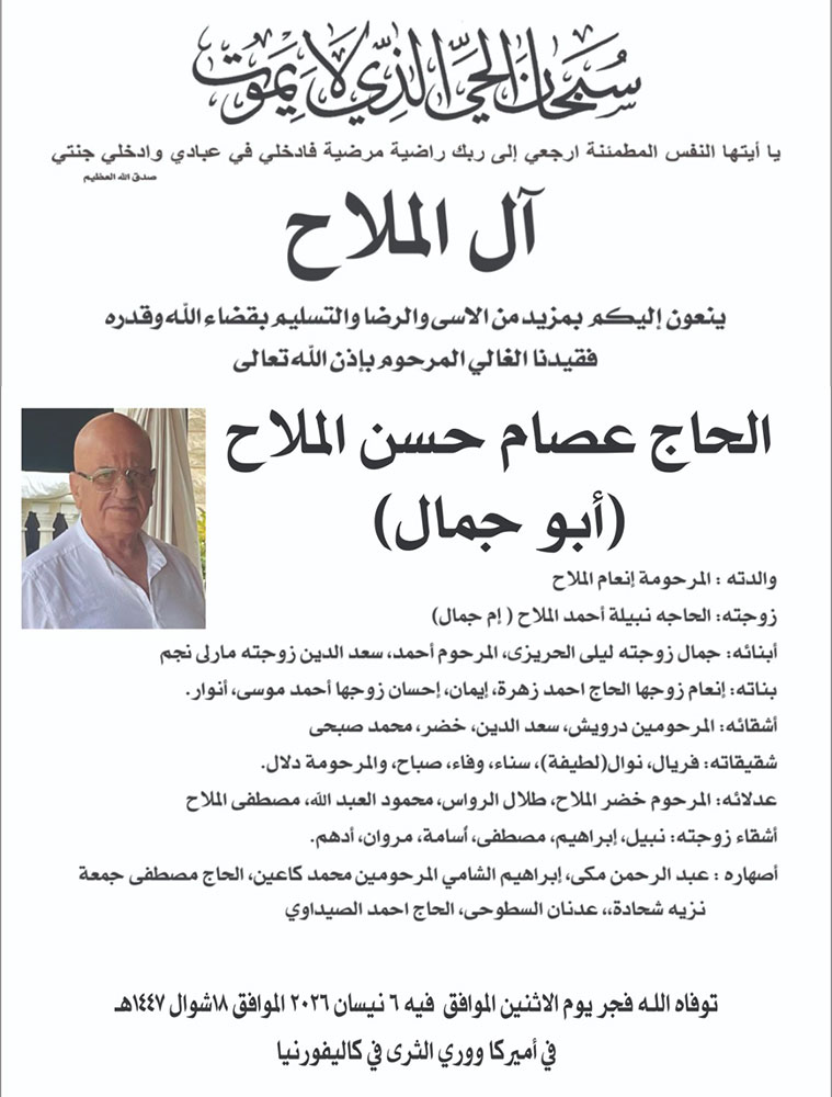 الحاج عصام حسن الملاح (أبو جمال) في ذمة الله