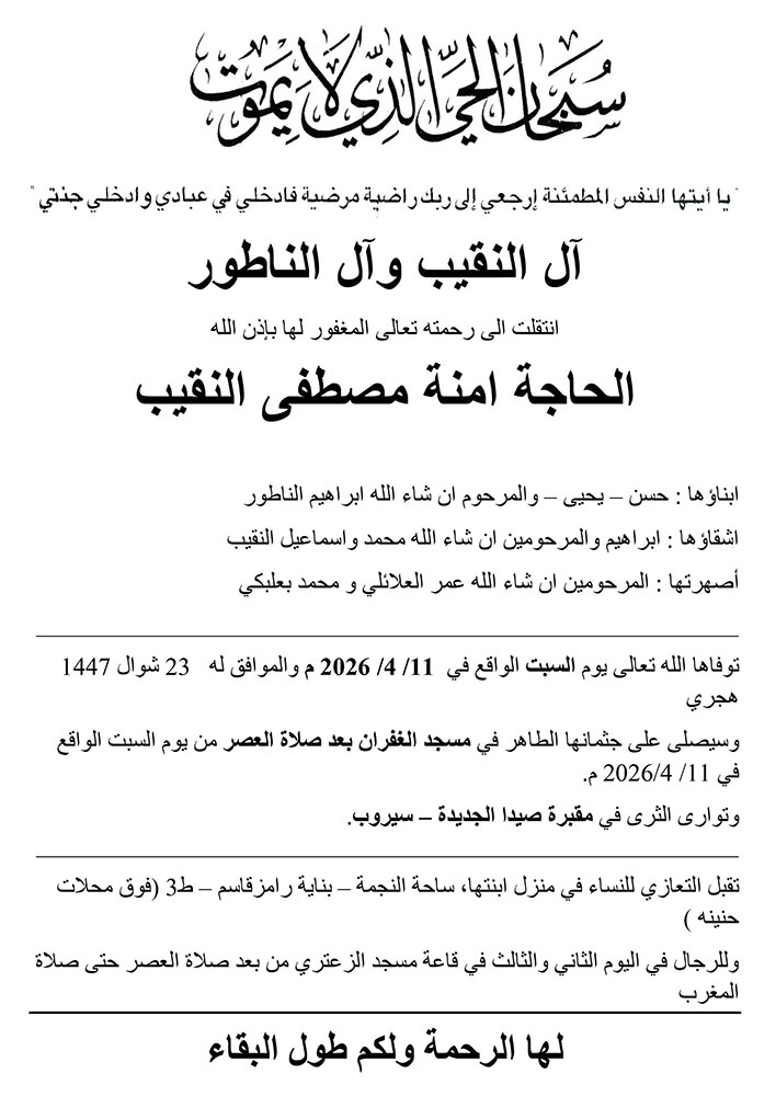 الحاجة آمنة مصطفى النقيب في ذمة الله