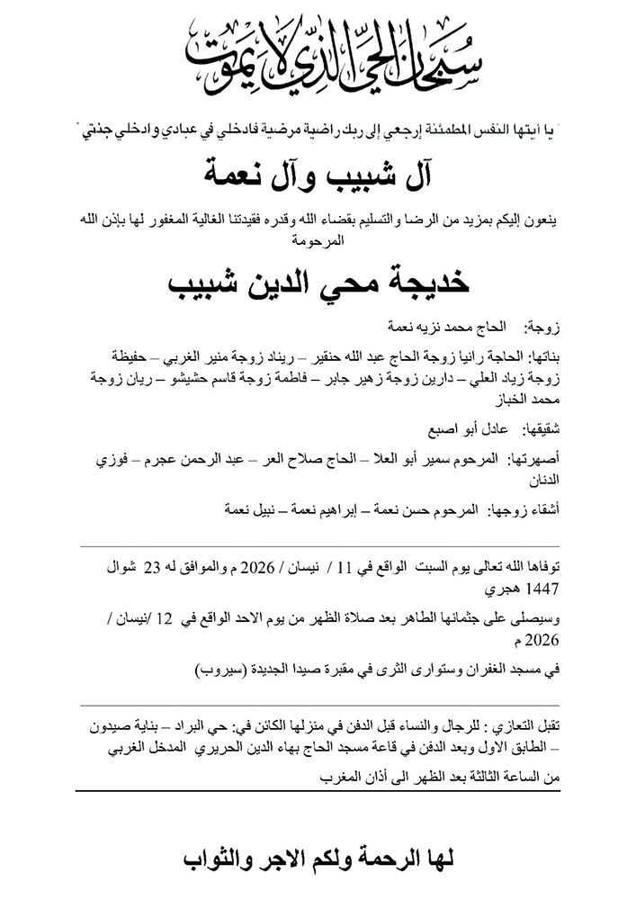 وفيات صيدا والجوار