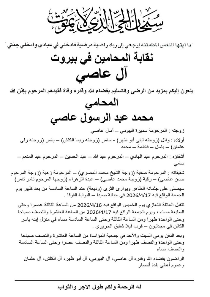 المحامي محمد عبد الرسول عاصي في ذمة الله