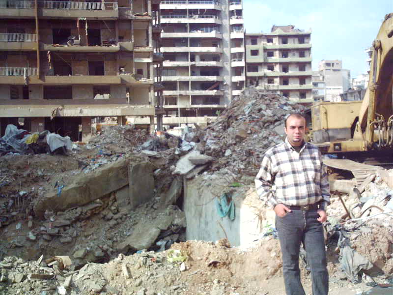 أحمد الكرجية في الضاحية الجنوبية لبيروت وسط الدمار.