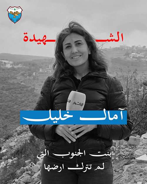 لقد نذرت الشهيدة آمال الخليل قلمها لنقل معاناة الجنوبيين وصمودهم بمهنية عالية وجرأة قلّ نظيرها. رحلت آمال وهي تؤدي واجبها في الخطوط الأمامية، لتتحول إلى شاهدةٍ وشهيدة، تحمل في قلبها حب الجنوب وفي قلمها حكايا الصمود التي أراد الاحتلال طمسها.