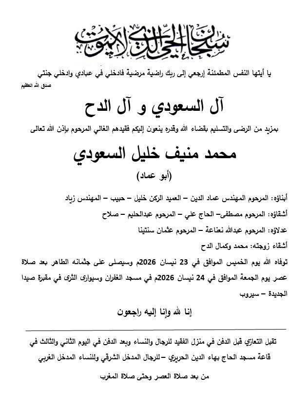 محمد منيف خليل السعودي (أبو عماد) في ذمة الله